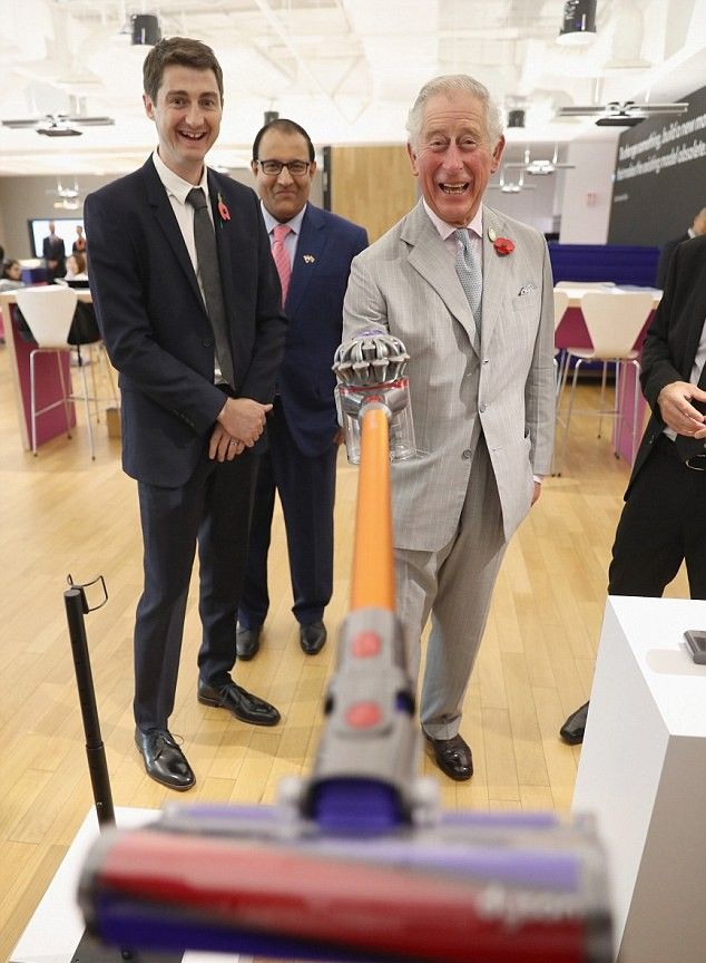 Принцу Чарльзу демонстрируют новый пылесос Dyson V8 Absolute. Технологический центр Dyson, Сингапур.