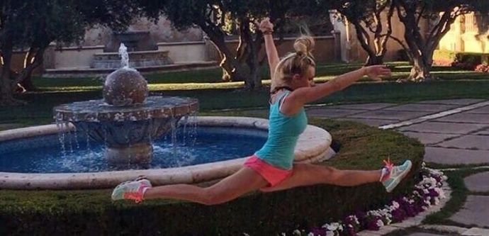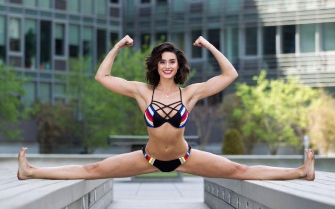 27-летняя Бьянка, дочь знаменитого актера Жана-Клода Ван Дамма, повторила легендарные шпагаты своего отца.