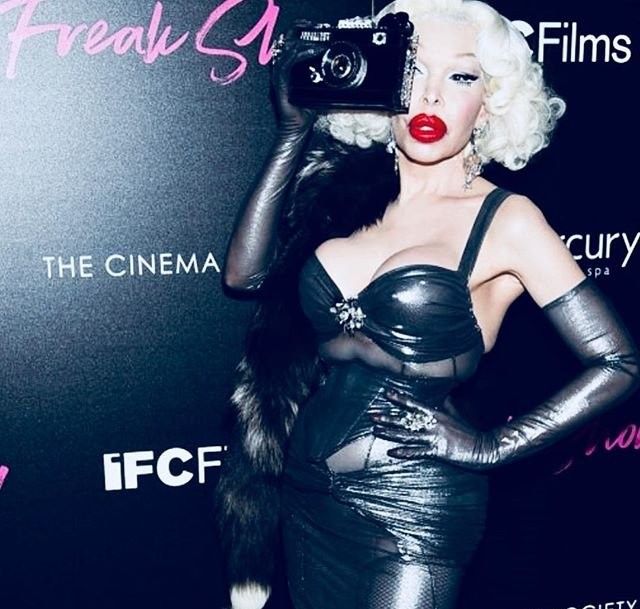 Американская модель-трансгендер Аманда Лепор (Amanda Lepore) посетила премьеру фильма "Freak Show" в Нью-Йорке и сразу оказалась в центре внимания! 50-летняя звезда не изменила своему скандальному стилю, когда выбрала для мероприятия экстравагантное "металлическое" платье с декольте, максимально открывающим её мастерски сделанный бюст.