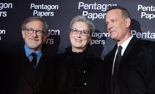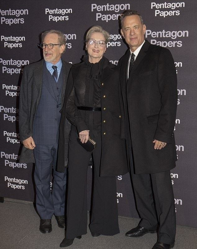 Мэрил выглядела очень эффектно, особенно в компании с Томом Хэнксом и Стивеном Спилбергом. Несмотря на свой возраст, 68-летняя актриса еще умеет удивлять!