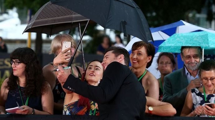 Хью Джекман позировал перед многочисленными камерами, братался со зрителями из толпы, делал совместные селфи с поклонницами.