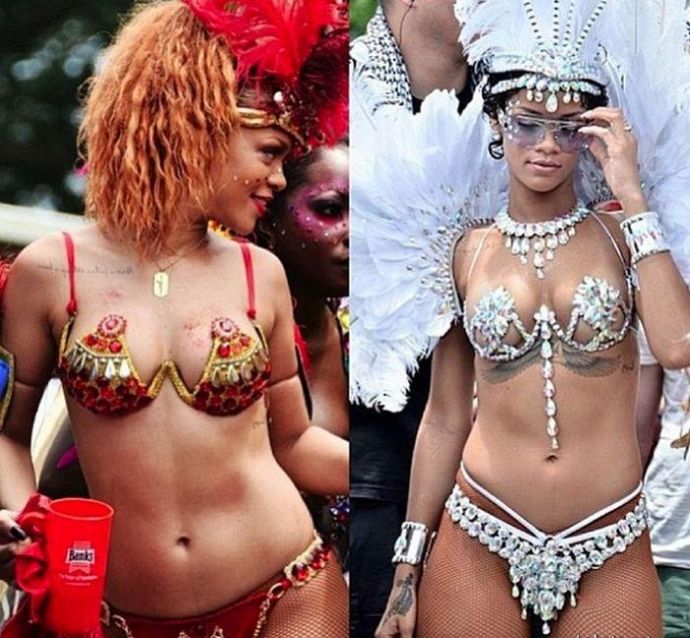 Вспомним как выглядила Рианна 3 года назад, ✔️ смотрится очень мило и красиво и сексуально на карнавале в Барбадосе.