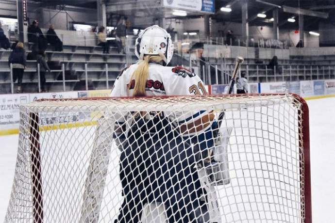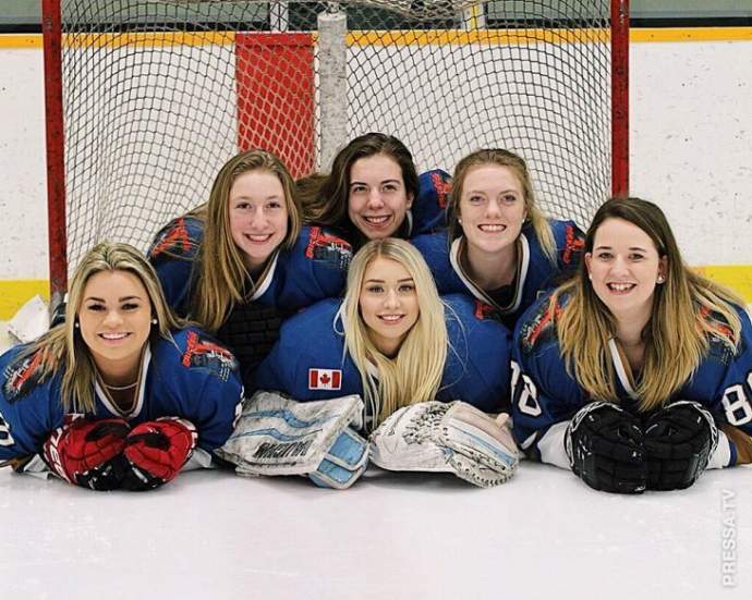 И не просто спортсменку, а вратаря хоккейной команды из Канады.