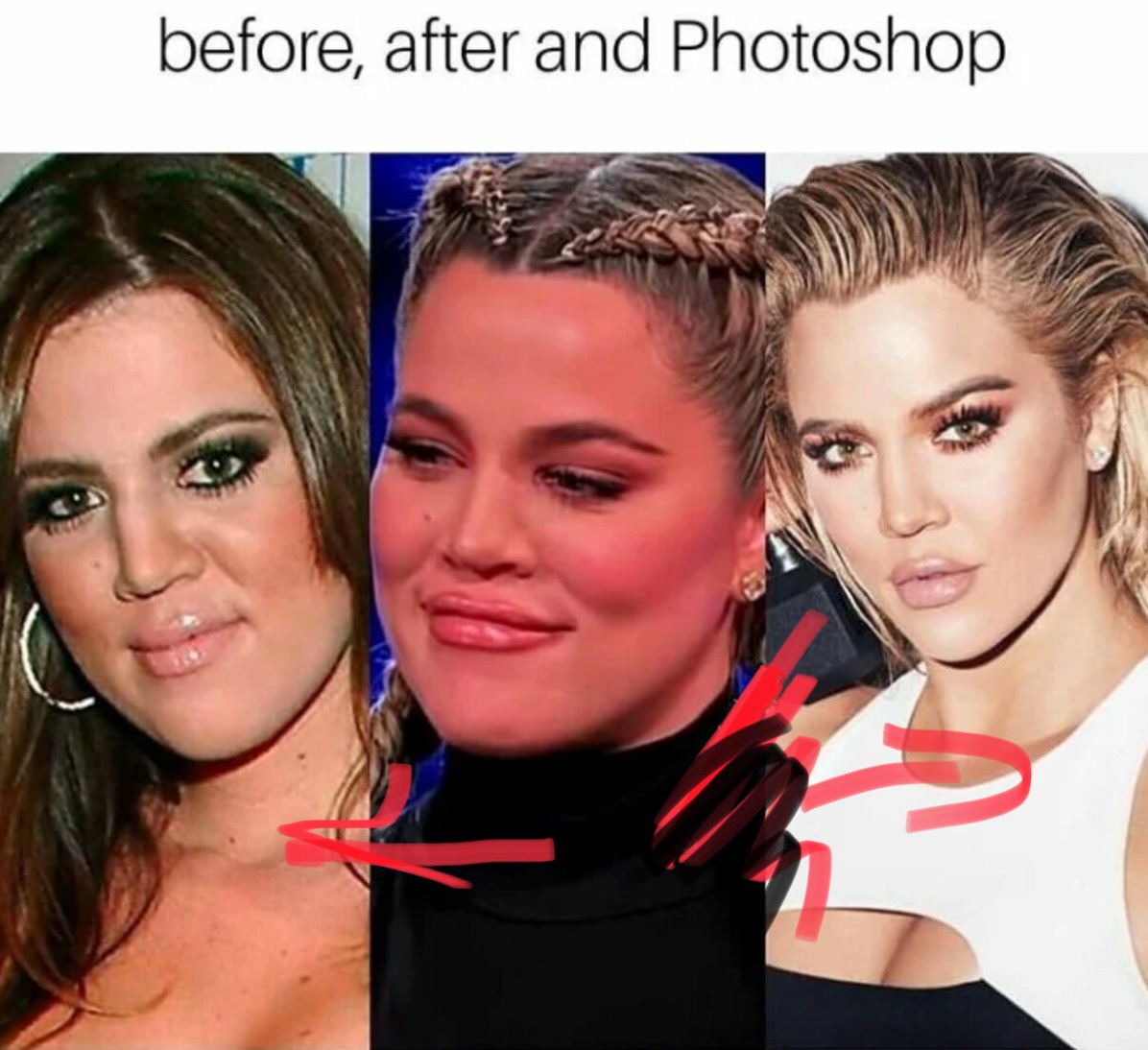 На самом деле, перед нами одно и тоже лицо одной даты, но отредактированное различными фоторедакторами… Кстати, на видео в соцсетях Кардашьяны- вся семья- используют видеоредакторы, которые планомерно убирают морщины, года и излишние килограммы. Как говорится, до чего же дошла техника!!