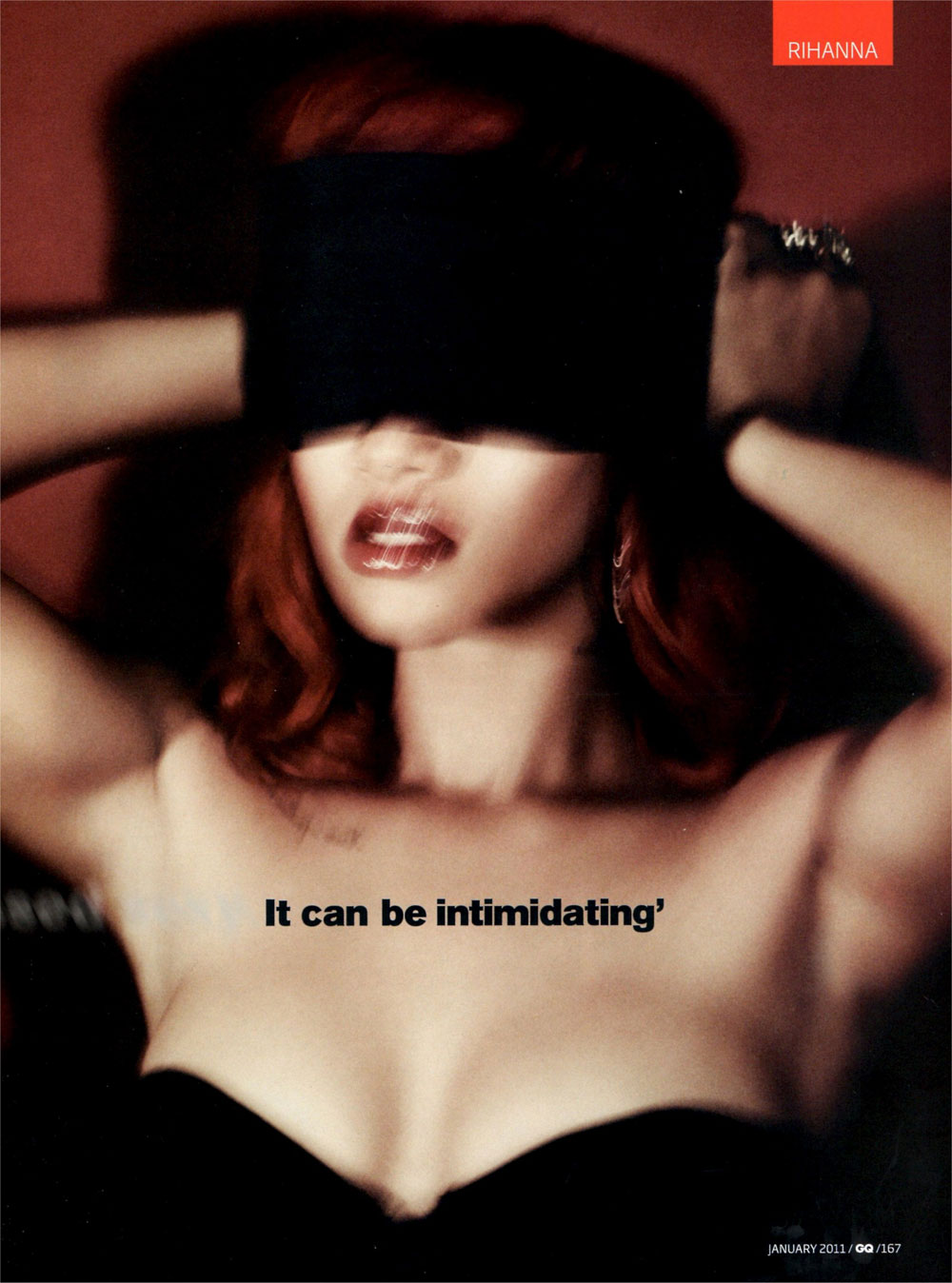 Певица по-прежнему упорно отказывается обнажать грудь. По мнению Рианны, это весьма унизительно для женщины. По-крайней мере за деньги так точно. При этом певица в интервью призналась, что образ, который ей создали – не совсем соответствует действительности, и что она как и все женщины тоже слабая, но только в некоторых моментах.