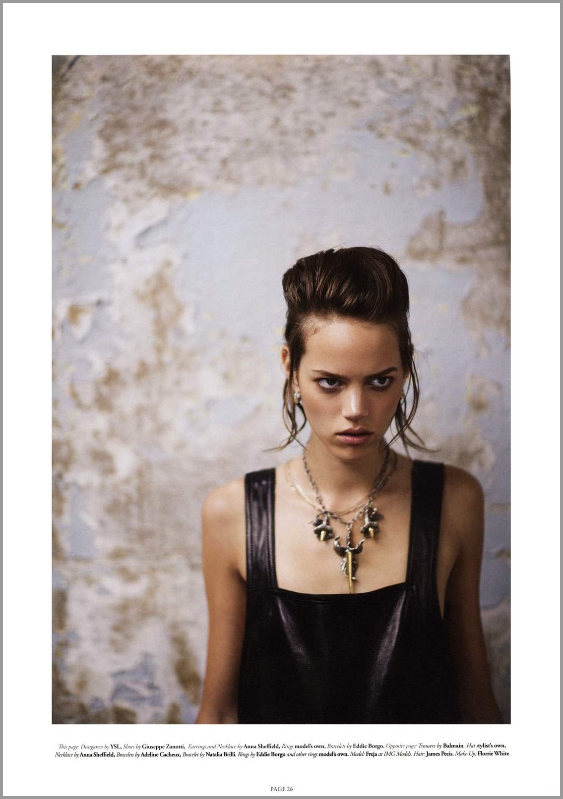 22-летней Фрее Беха Эрихсен пророчат славу Кейт Мосс. Как и худосочная британка, хрупкая Фрея устанавливает новые стандарты среди топ-моделей. женщина-андрогин начала карьеру в 18 лет, когда ее из такси заметил сотрудник одного из датских агентств мод. Юная датчанка сразу же пошла нарасхват у таких именитых брендов, как Prada, Louis Vuitton and Miu Miu.