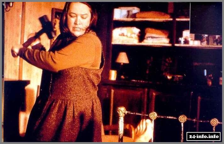 «Томминокеры» (1987) — роман-аналогия, вопль о помощи. Голоса в голове писательницы, завладевшие ее волей и невидимые инопланетные властители разума. Кинг шутил, что пил уже столько, что не помнит, как писал «Куджо» (1981) — роман о сенбернаре, который подхватил бешенство. С конца 80-х писатель не выпил ни капли алкоголя. Кэти Бейтс в роли безумной медсестры. Один из самых страшных кадров фильма «Мизери», 1990