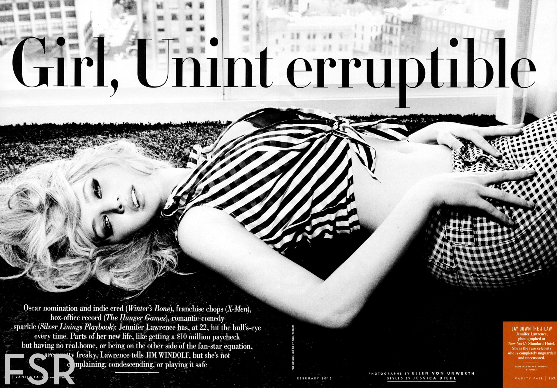 В свои 22 года, американка уже дважды номинировалась на премии «Золотой глобус» и «Оскар». За последние два года вышли восемь картин с ее участием. И, стоит отметить, большинство из них стали весьма успешными. Постепенно, актриса осваивает и смежные профессии. Дженнифер Лоуренс (Jennifer Lawrence) предстанет в двух разноплановых фотосессиях. Первая сделана для журнала «Vanity Fair», которую создавала сама Эллен фон Унверт (Ellen von Unwerth), а вторая принадлежит объективу британца Саймона Эмметта (Simon Emmett).
